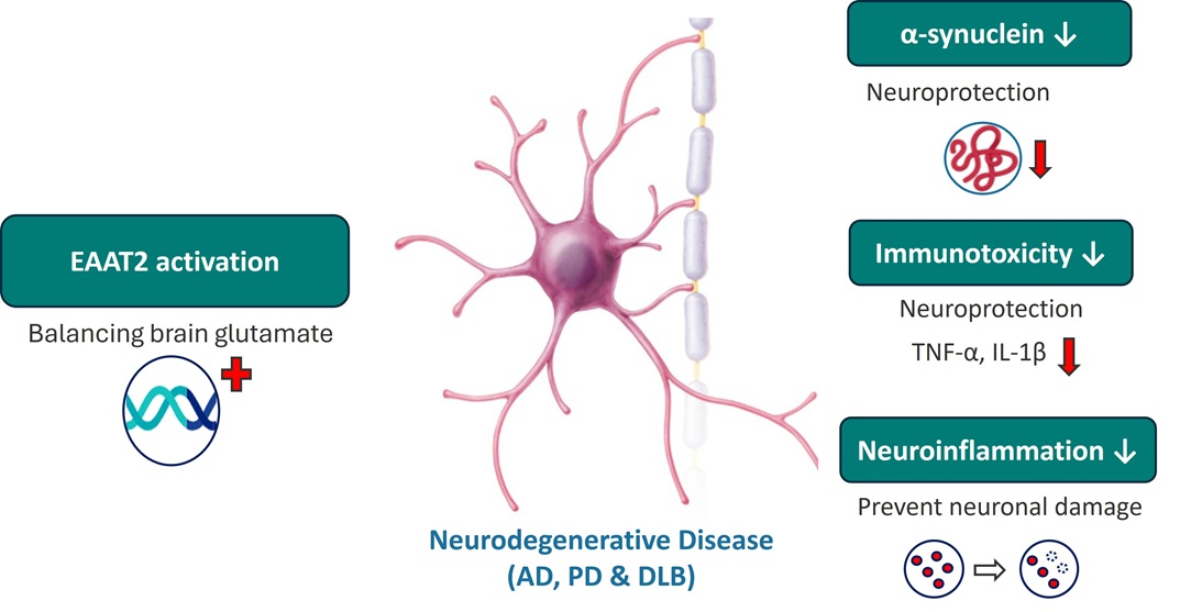 GLT-1是中樞神經系統核心谷氨酸轉運蛋白,其功能失調導致神經興奮性毒性與Lewy小體堆積。BX100通過上調GLT-1表達,實現多靶點調控。